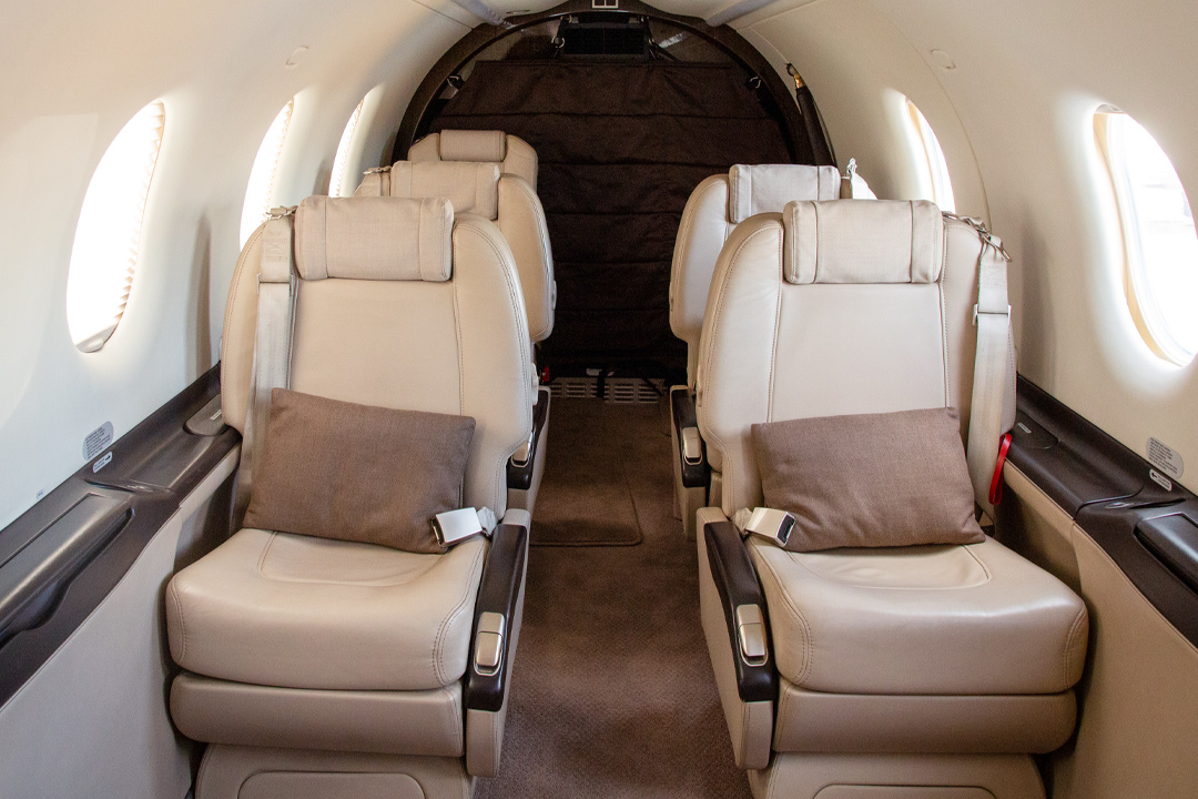 Our FleetThis turboprop is the perfect aircraft for short trips. It comfortably accommodates up to eight passengers with ample baggage space, luxury seating, and in-flight amenities.